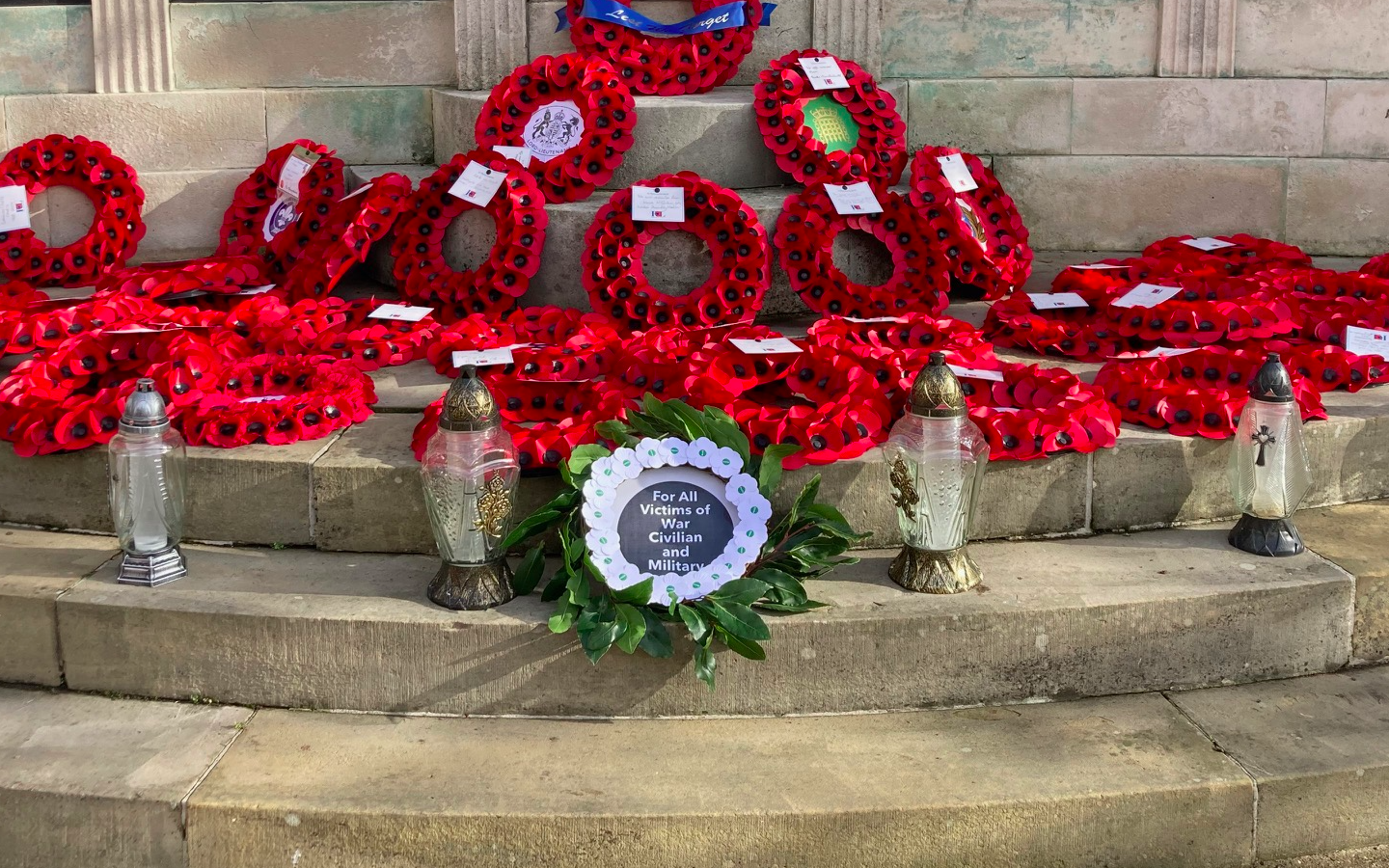 The National Alternative Remembrance Ceremony drew record numbers, with around 300 people attending - roughly double the turnout in recent years. The event, hosted by activist and comedian Kate Smurthwaite, took place in front of the memorial to conscientious objectors and featured a two-minute silence and the laying of white poppy wreaths.